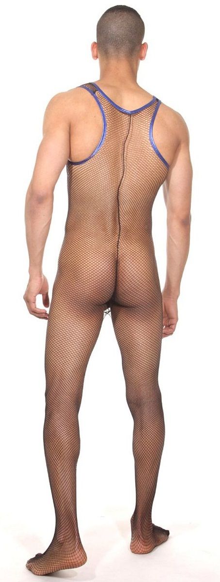 Мужское боди черного цвета в мелкую сетку. Боди выполнено из мягкой и эластичной ткани, поэтому легко надевается, снимается и не доставляет дискомфорта при использовании. Помимо преимуществ ткани, для максимального упрощения, в боди есть вырезы в интимной зоне и на ягодицах.
