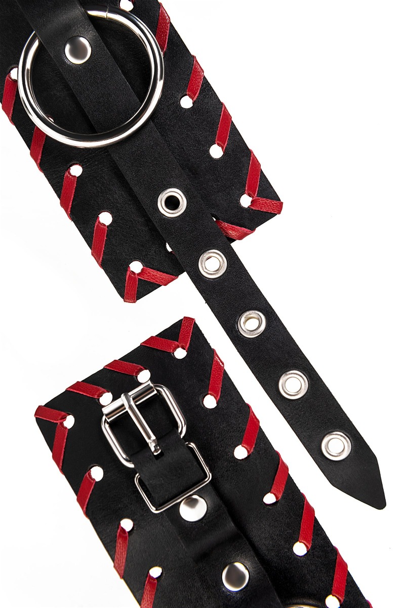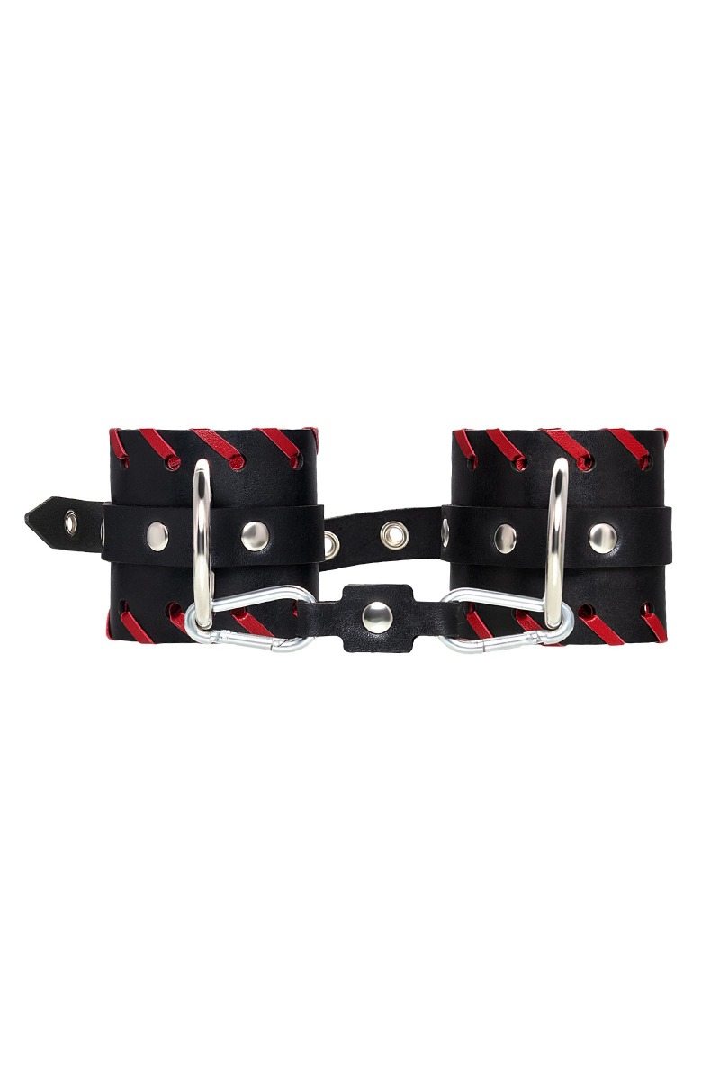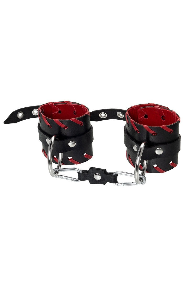 Готовы играть по-взрослому? Не бойтесь своих желаний! Основатели бренда уверены: лучший способ избавиться от искушения - поддаться ему! Добавьте пикантную деталь в ролевую игру и воплотите самую смелую сексуальную фантазию в реальность! Двухслойные кожаные наручники с окантовкой красного цвета, могут стать стильным аксессуаром на «свободных» руках, но могут послужить вашим целям и фантазиям по своему прямому назначению. Наличие двух карабинов и колец позволяет использовать изделие как раздельно – аксессуар-манжеты, так и как наручники для фиксации. К широким металлическим кольцам также можно присоединить и другие аксессуары при помощи карабинов. Благодаря универсальному размеру наручники могут использоваться и мужчинами, и женщинами. Размер легко регулируется с помощью металлических пряжек, органично вписывающихся в общий стиль. Длина манжет - 20 см, ширина манжет - 6,5 см. Длина сцепки - 13 см.