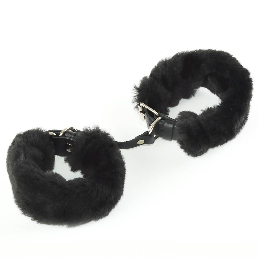 Ремешки наручников изготовлены из натуральной кожи и декорированы съемным искусственным мехом.