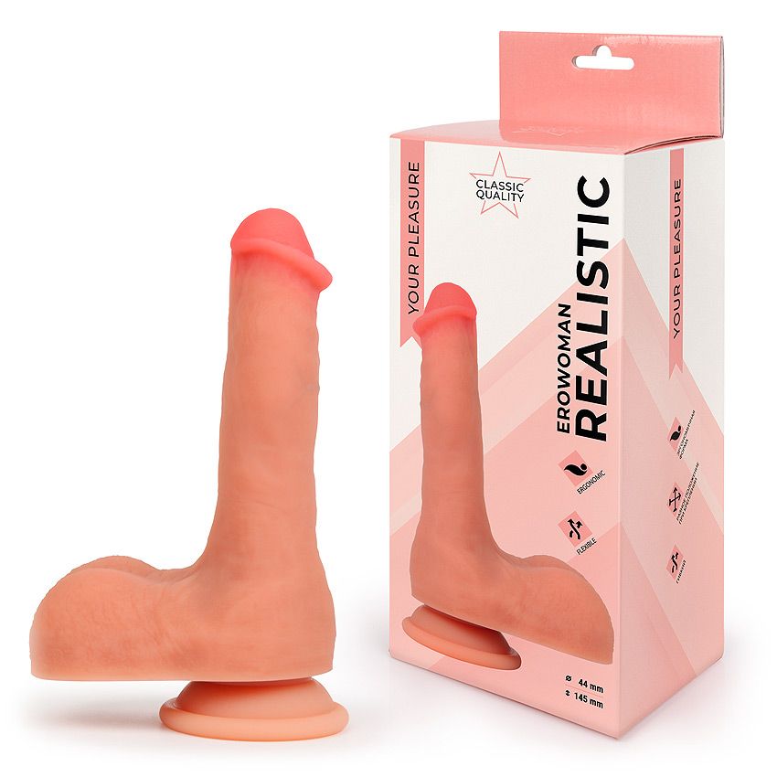 Фаллоимитатор на присоске для любителей реалистичных секс-игрушек! Интимный аксессуар отличается ярко выраженной головкой, внушительной мошонкой и роскошными размерами пениса. Натуральный оттенок, складочки и «пульсирующие» венки придают изделию больше естественности. Присоска позволяет прочно крепить фаллоимитатор на ровной поверхности в горизонтальном или вертикальном положении. Секс-игрушка изготовлена из мягкого материала, дарящего приятные тактильные ощущения. Рабочая длина - 14,5 см.