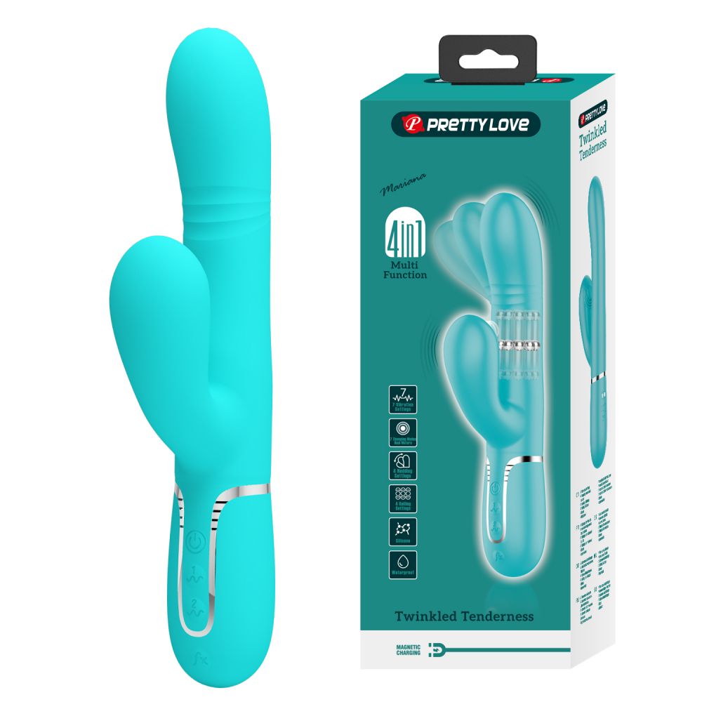 Силиконовый вибратор-кролик Mariana. Этот кролик имеет 7 режимов вибрации, 7 режимов постукивания, 4 настройки сгибания, 4 режима вращения бусин. Перезаряжаемый от USB. Рабочая длина - 12 см.